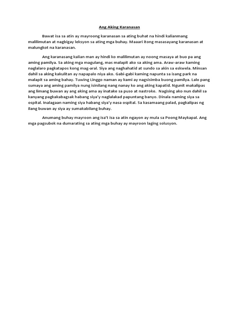 Ang Aking Karanasan Docx Ang Aking Karanasan Bawat Isa Sa Atin Ay Mayroong Karanasan Sa Ating Buhat Na Hindi Kalianmang Malilimutan At Nagbigay Course Hero