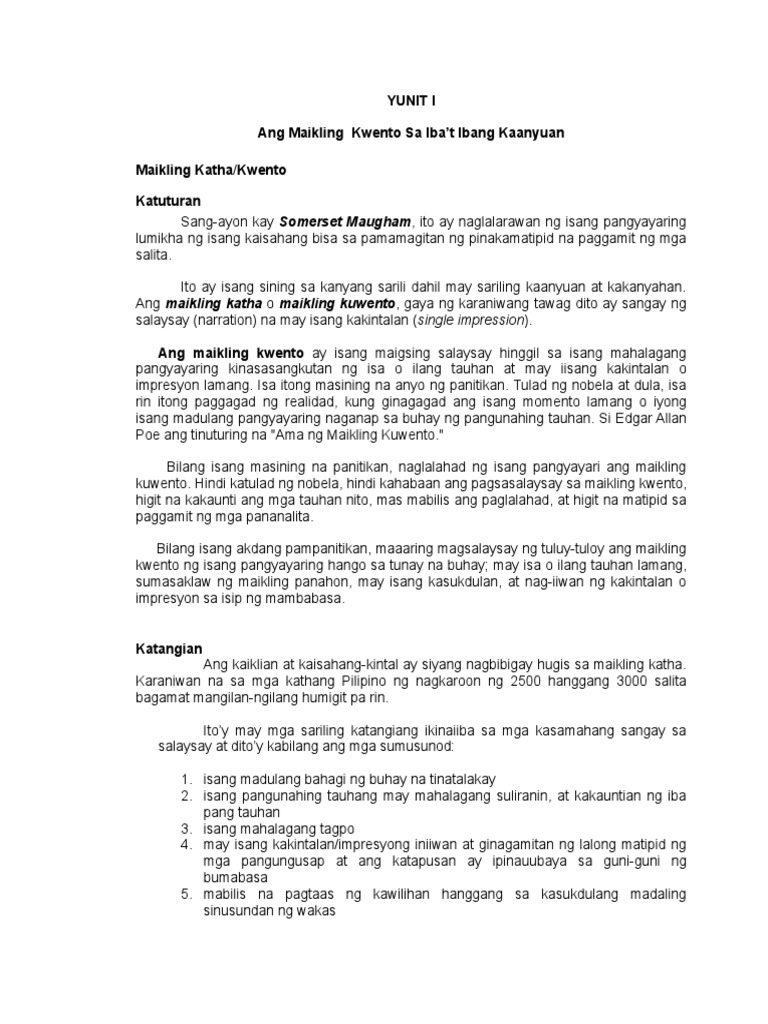 Yunit 1 Mning Of Short Story 4prnting 4