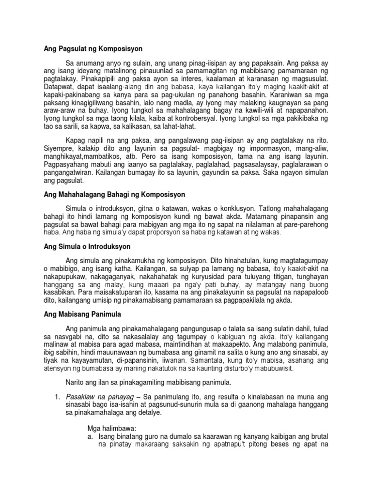 Halimbawa Ng Panimula Gitna At Wakas Na Karanasan