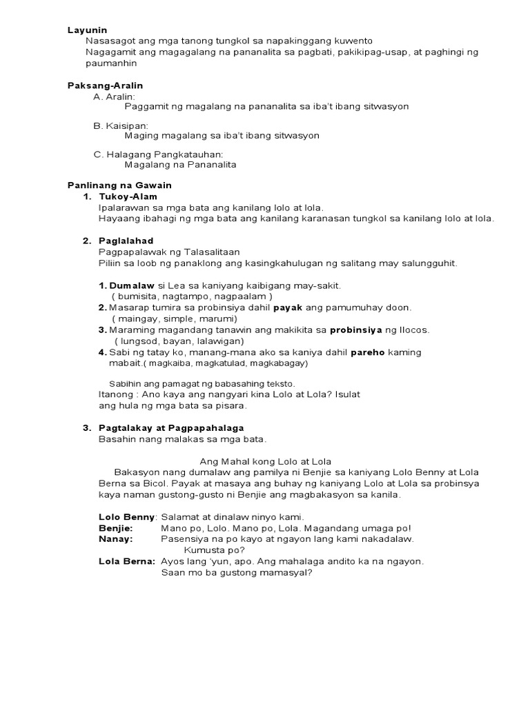 Paggamit Ng Magalang Na Pananalita Sa Iba T Ibang Sitwasyon