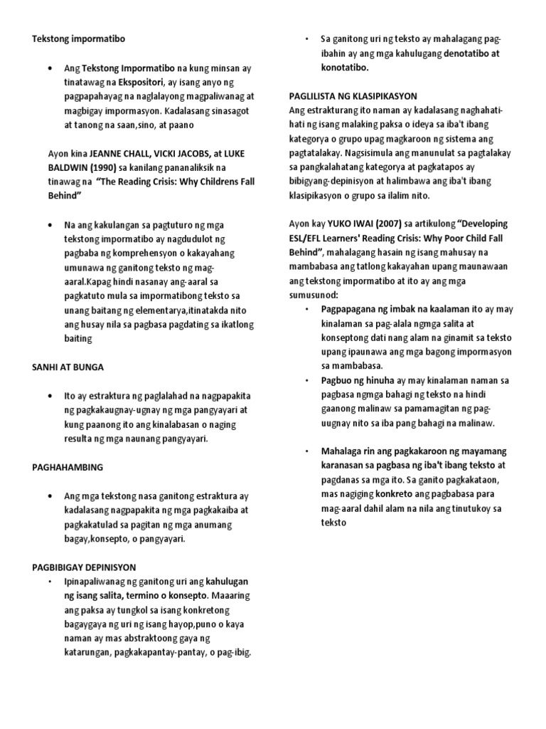 Tekstong Impormatibo Sa Ganitong Uri Ng Teksto Ay Mahalagang Pag