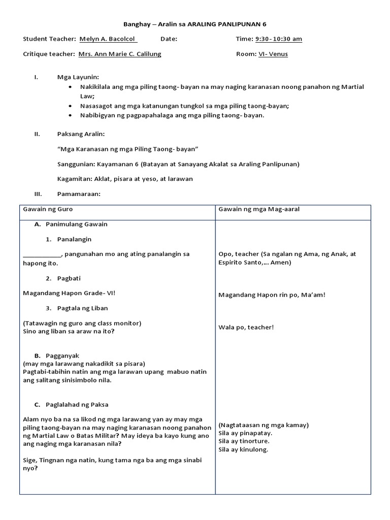 Ap6tdk Iv B 2 1 Naiisa Isa Ang Mga Karanasan Ng Mga Piling Taumbayan Sa Panahon Ng Batas Militar